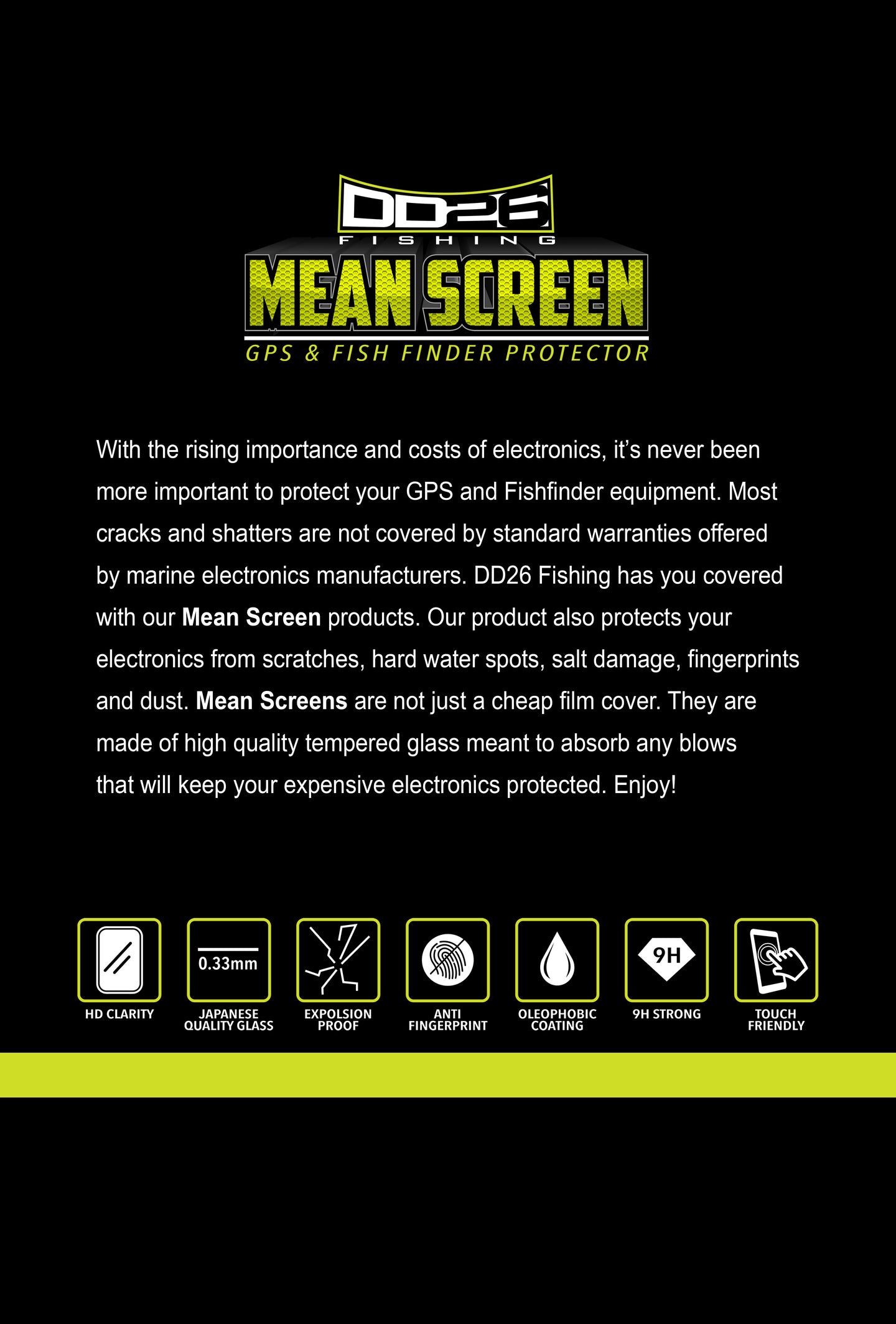DD26 Fishing Mean Screen GPS and Graph Protective Tempered Glass